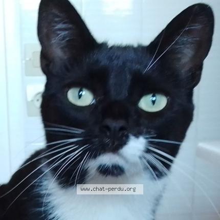 Présenté une tâche noir sous son cou blanc, yeux verts, extrémité de la queue coupée.