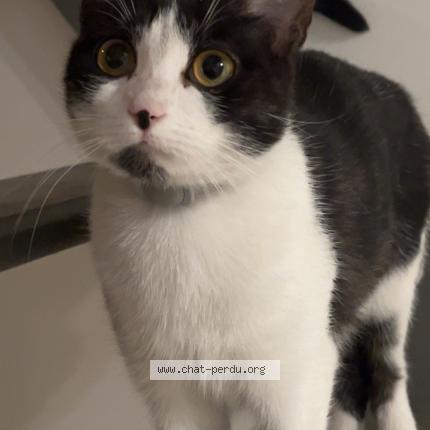 Elle est sortie par la fenêtre pour se balader sur les toits mais n'est jamais revenue. Elle a une grosse tâche noire sur le menton et sa queue est très longue. Son corps est long et fin. Elle porte un collier anti puce gris. Sociable mais n'est pas habituée à être dehors et aura donc très peur.
