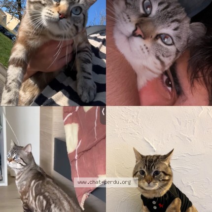 | Il est super affectueux je peux pas vivre sans lui si vous avez la moindre information s'il vous plaît prévenez moi une grande récompense attribuée à la personne qui le retrouve il a les yeux bleu il est plutôt craintif mais affectueux 🙏🏽☹️ | Description | Un chat tigré marron noir se pose dans notre jardin, il a des plaques blanches sur la tête à l'air un peu vieux et est plutôt ébouriffé au niveau du visage. Il n'est pas peureux ni agressif avec les autres chats. |