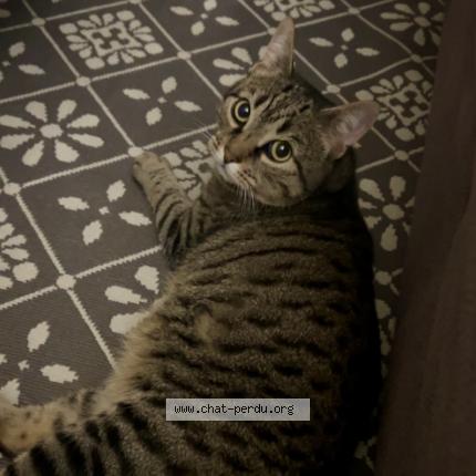 Chat craintif, pas habitué à sortir dehors. Il a dû s’enfuir par le jardin.